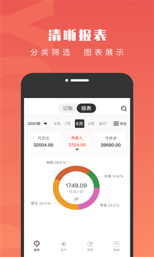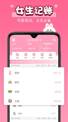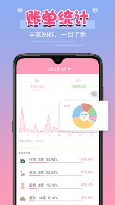 女生记账app是一款简洁的生活记账软件,轻松记录每一笔支出和收入,轻松计算月度资金!可导出数据到sd打印店或信用卡上随时编辑和分享!记账、理财更轻松!更拥有数据实时同步、一直在努力帮您更节约流量,告别小费比转储蓄罐、记账管家。女生记账简介...