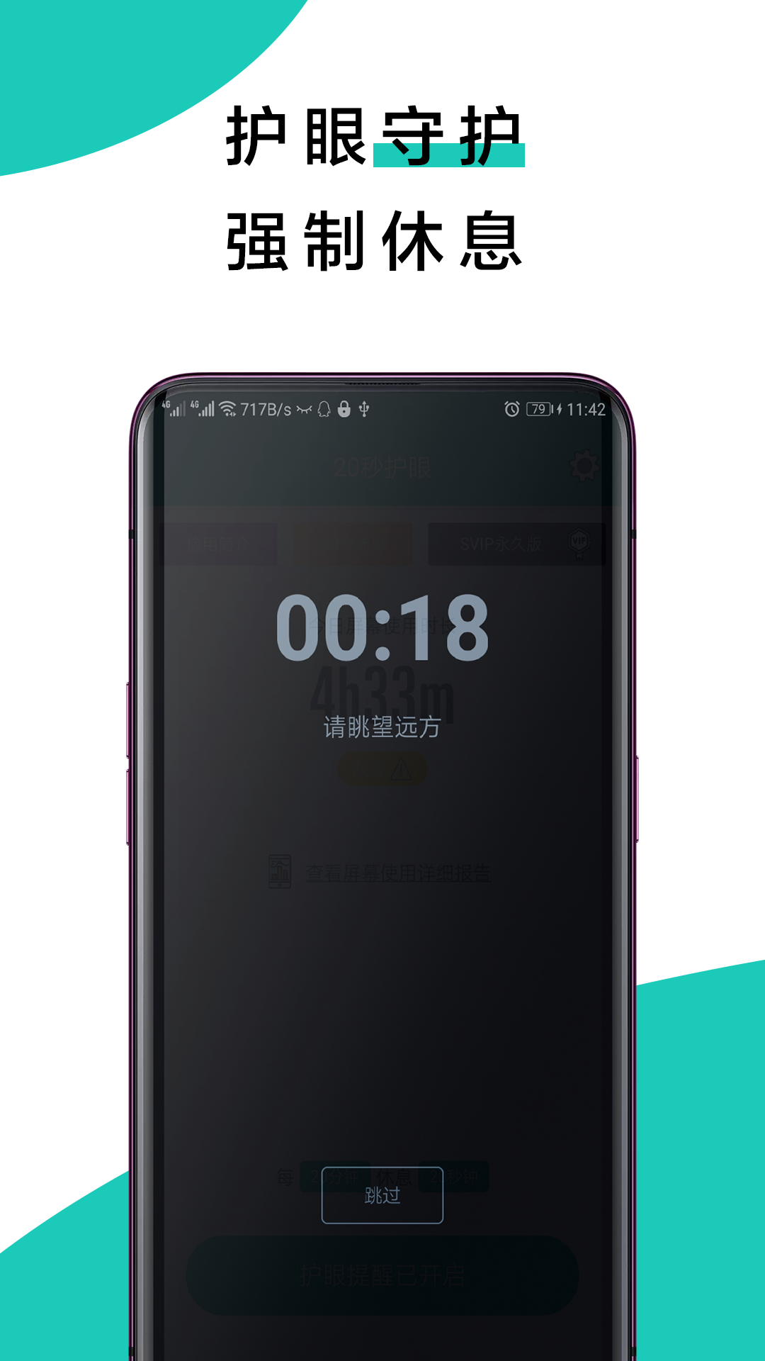 20秒护眼是一款专门为护眼研发的手机软件,用户可以在这款软件上面进行手机亮度的调节,并且还可以设置护眼的时间时长,软件为了保护你的用眼健康,当你在白天和夜间使用的眼睛超过一段时间之后,软件就强制的提醒你,帮助你完全脱离手机,让你在用眼过度的...